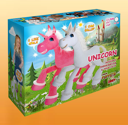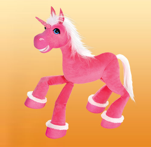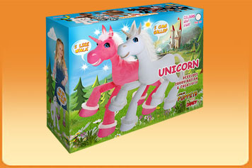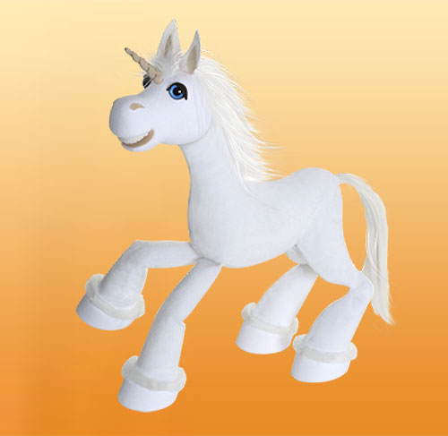 Magický jednorožec - stačí málo a bude rozprávať, čarovať, kráčať a odnesie vás cvalom do krajiny rozprávok. Vernú imitáciu jednorožcovho pohybu dosiahneme zámenou povrázkov na zadných nohách. Má 6 povrázkov a rozoberateľné vodítko. Je 42 cm vysoký.