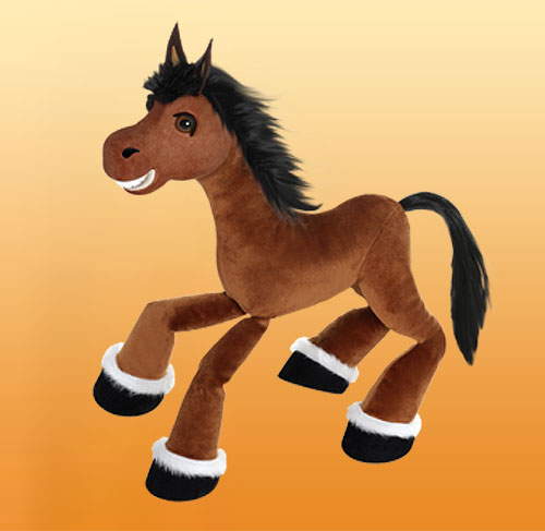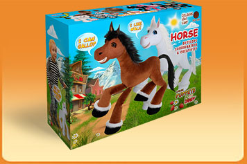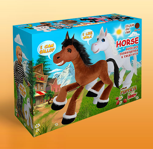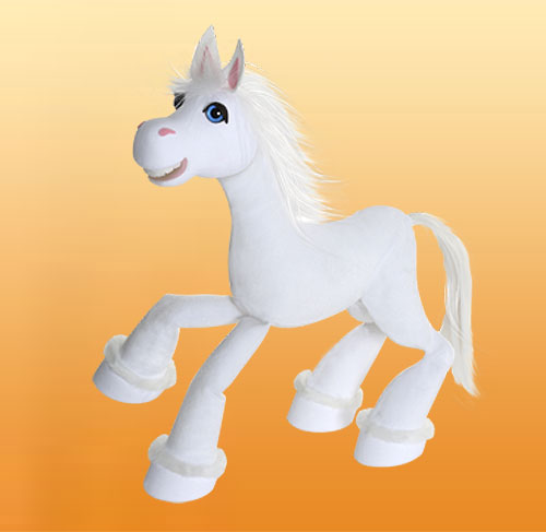 Pôvabný koník - sami sa rozhodnite, či sa dá do kroku, klusu alebo precvála polia. Pre všetky deti, ktoré milujú rozviatu konskú hrivu. Vernú imitáciu konského pohybu dosiahneme zámenou povrázkov na zadných nohách. Má 6 povrázkov a rozoberateľné vodítko. Je 42 cm vysoký.