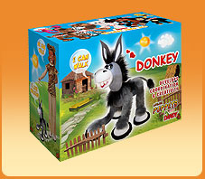Všetečný oslík – chcete si užiť kopec zábavy? Oslík vystrúha tie najbláznivejšie pózy, roztancuje kopýtka a rozosmeje všetkých okolo vás. Má 6 povrázkov a nové odpájateľné vodítko. Je 37cm vysoký.