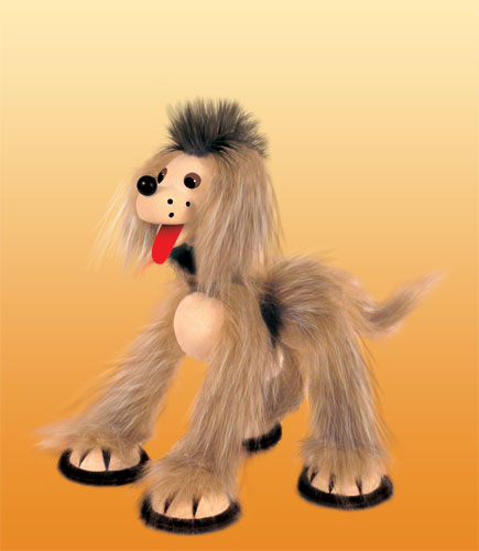 Tento chlpatý psík má neustále nadšený výraz a keď ho dáte do pohybu, pôvabne kráča. Má 6 povrázkov a rozoberateľné vodítko. Je 30cm vysoký.